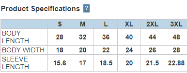 Click to view sizing chart.