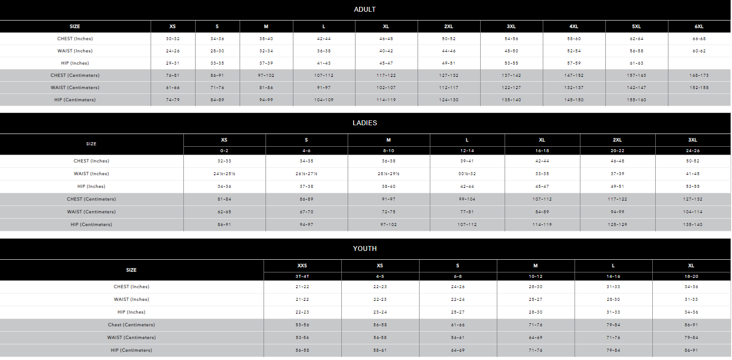 Click to view sizing chart.