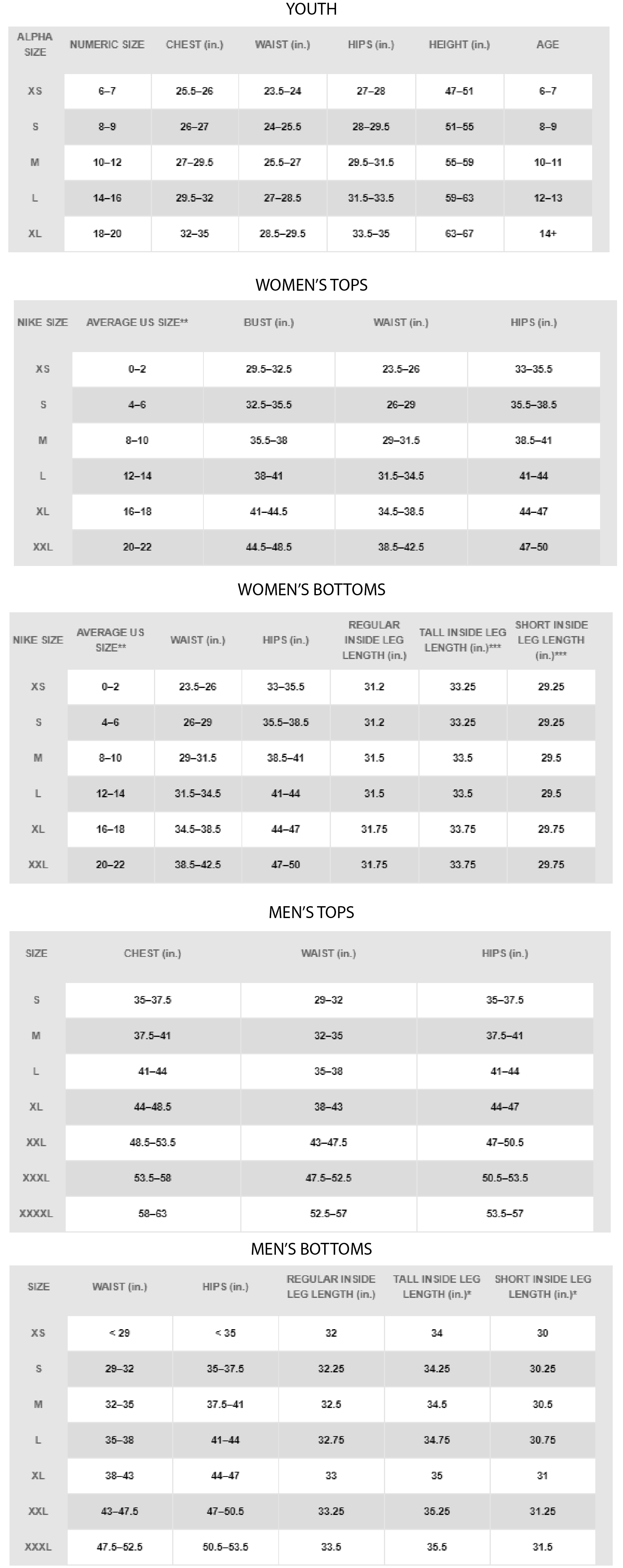 Click to view sizing chart.